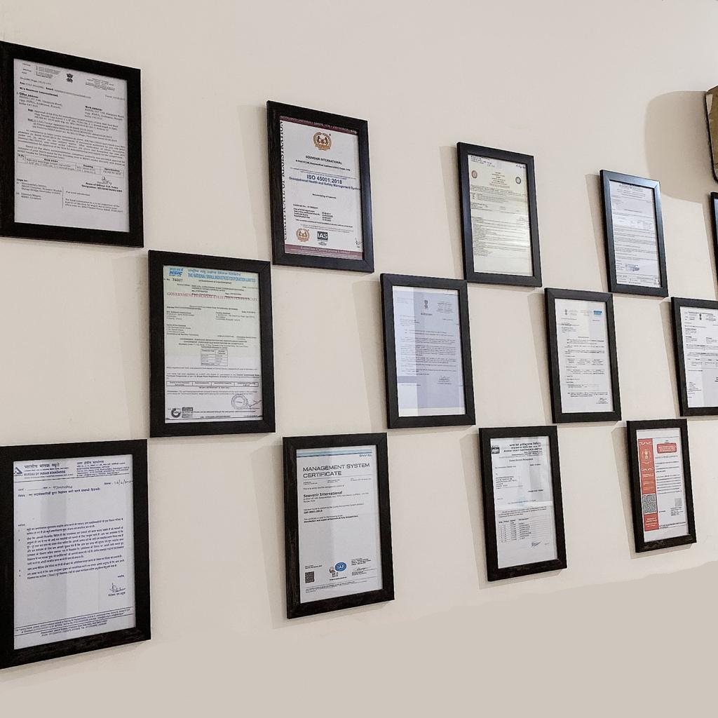 ISO 9001:2015, CE Certification: BS EN 15048, NABL ISO/IEC 17025:2005 Calibrated Lab, ISO 45001:2018